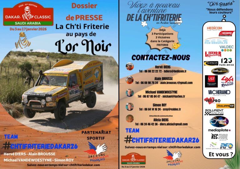 Suivez la team #CHTIFRITERIEDAKAR2026 au pays de l’Or Noir du 3 au 17 janvier 2026.